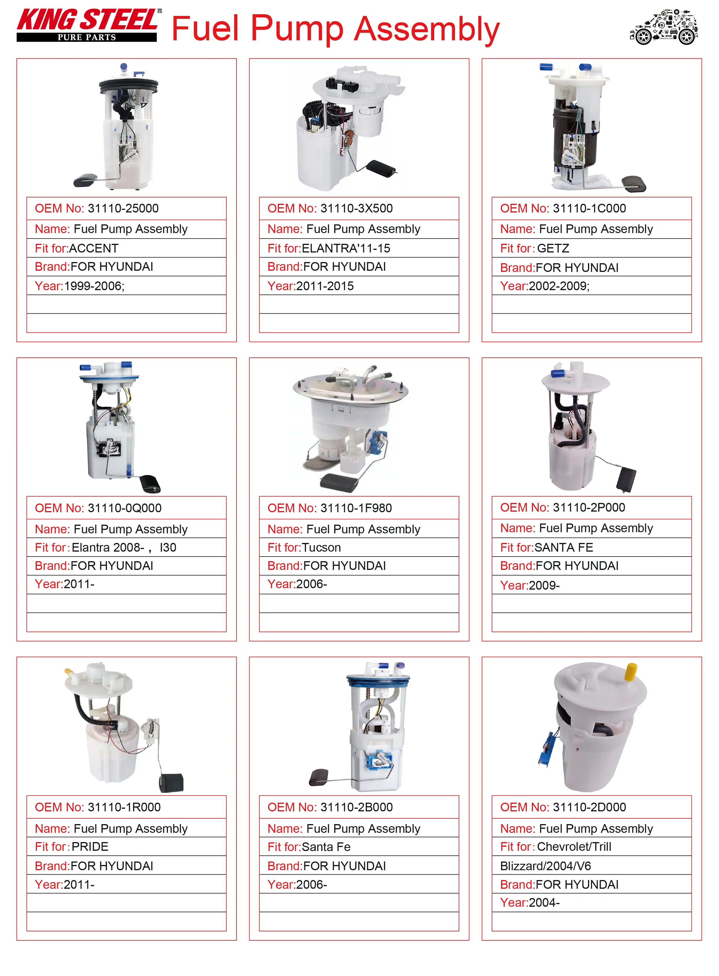 OE 31110-S3500/2S000/2F500/2H000/2D531/17000/2E001/2E350/1G500 Bomba De Combustible Electric Fuel Pump Assembly for Hyundai Kia